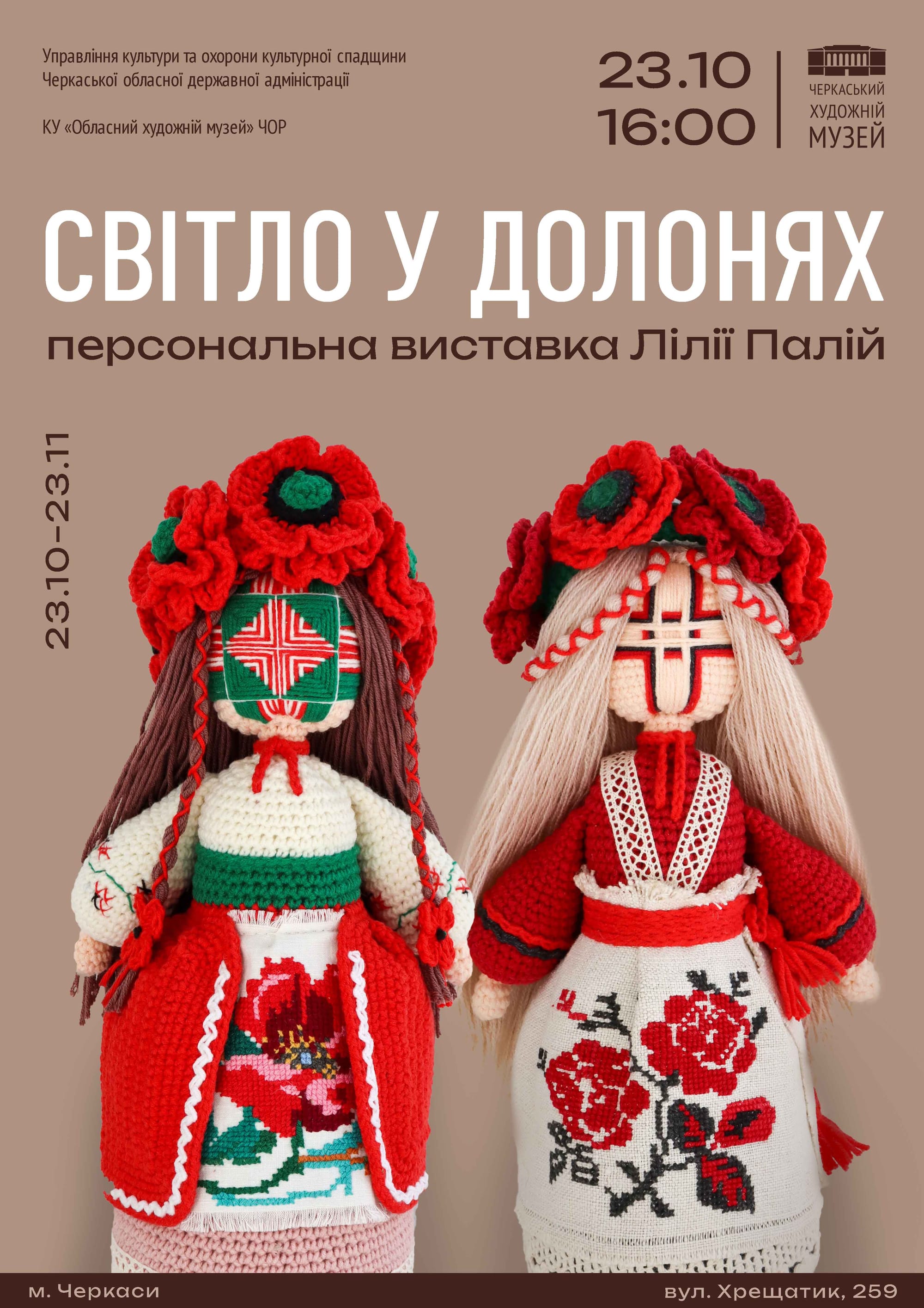 23 жовтня о 16:00 — відкриття персональної виставки в'язаних ляльок Лілії Палій «Світло у долонях»