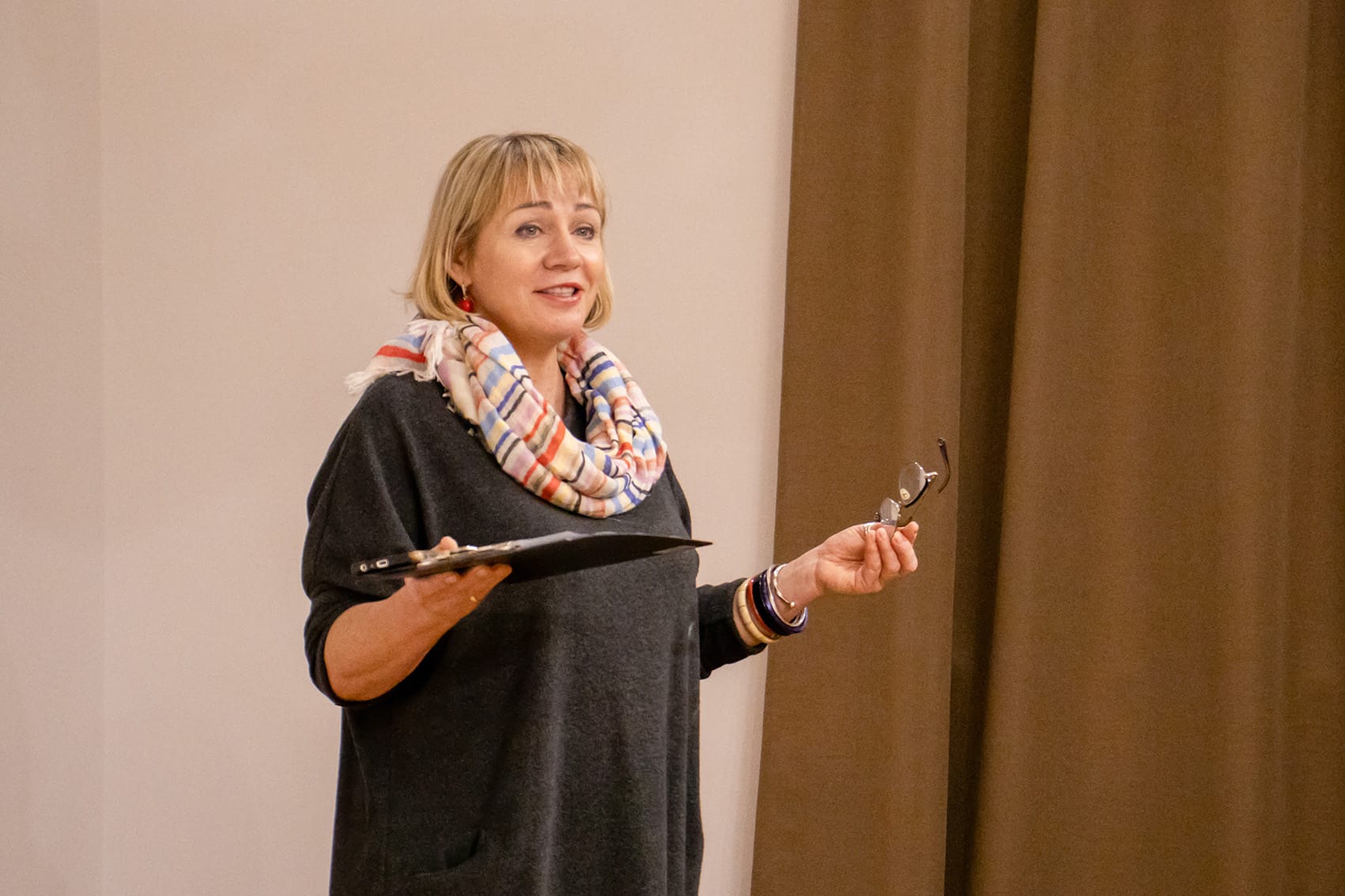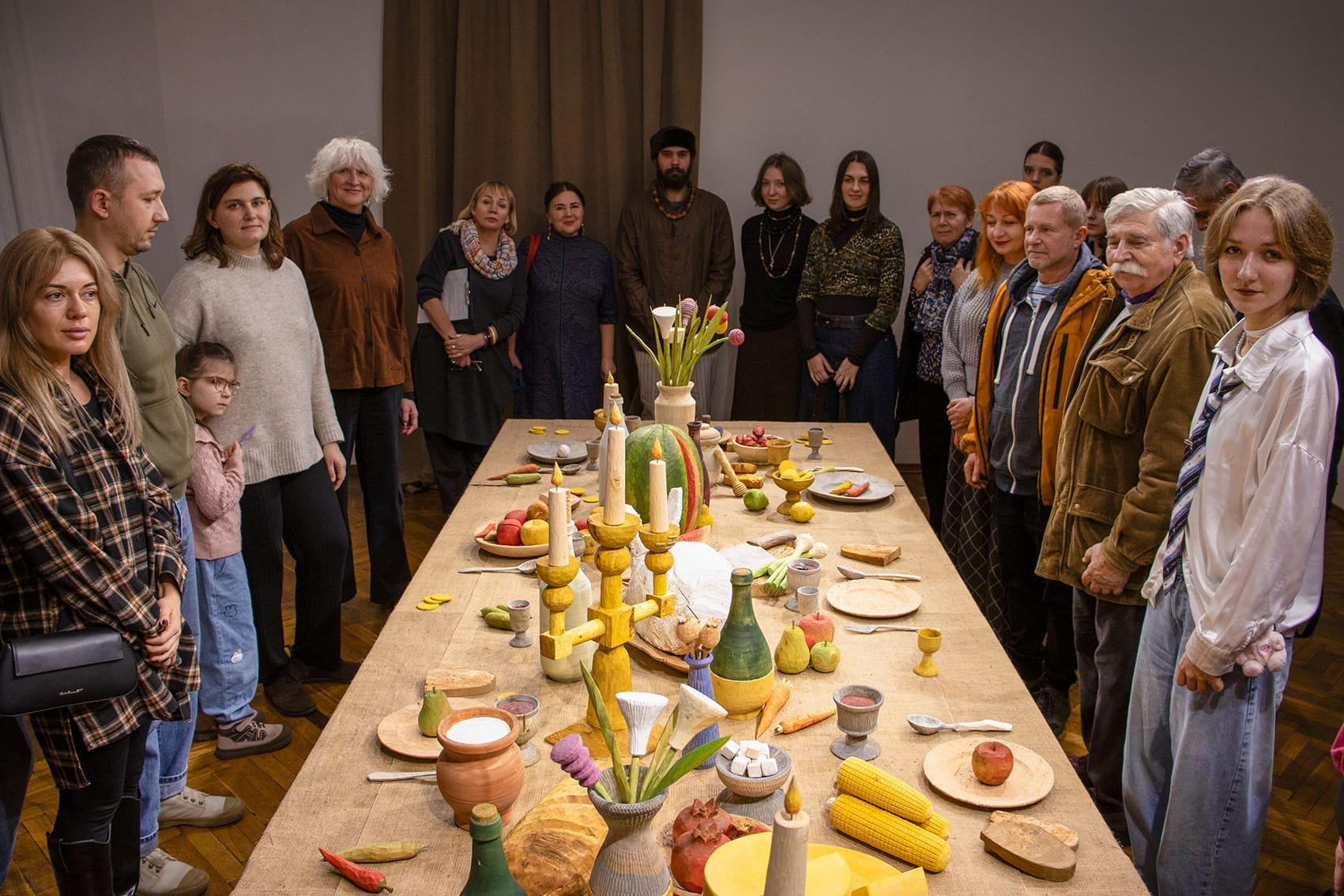 Стіл без стільців, але займає, простір так, ніби місця вже заповнені тими, кого глядач не бачить. Сам глядач залишається у ролі спостерігача, який може тільки підійти, але не приєднатися.