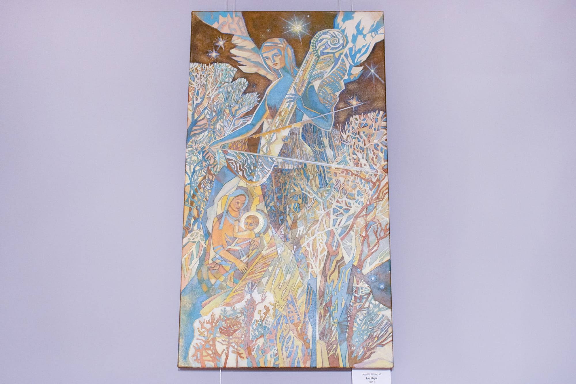 Виставка багатогранна завдяки живописним краєвидам Віктора Олексенка, Надії Нікіфорової, Віктора Снісаренка, Володимира Савченка, витонченій графіці Віктора Афоніна та Віктора Зеліка. Сучасні втілення різдвяних традицій закладені у творах Неоніли Недосєко, Оксани Сірої, Олександра Шепенькова, Григорія Малорода, Севастьяни Федоренко, Анастасії Линовицької, Лесі Тарахтій. Різдвяна тематика вдало інтерпретована через традиційне мистецтво у текстилі Ольги Мартинової, Лариси Шейх-Афоніної, Тетяни Сосуліної, Наталії Крамної-Таран, Валерії Фізер, у кераміці Ольги Бердник-Отнякіної, Людмили Шилимової-Ганзенко та Івана Фізера.
