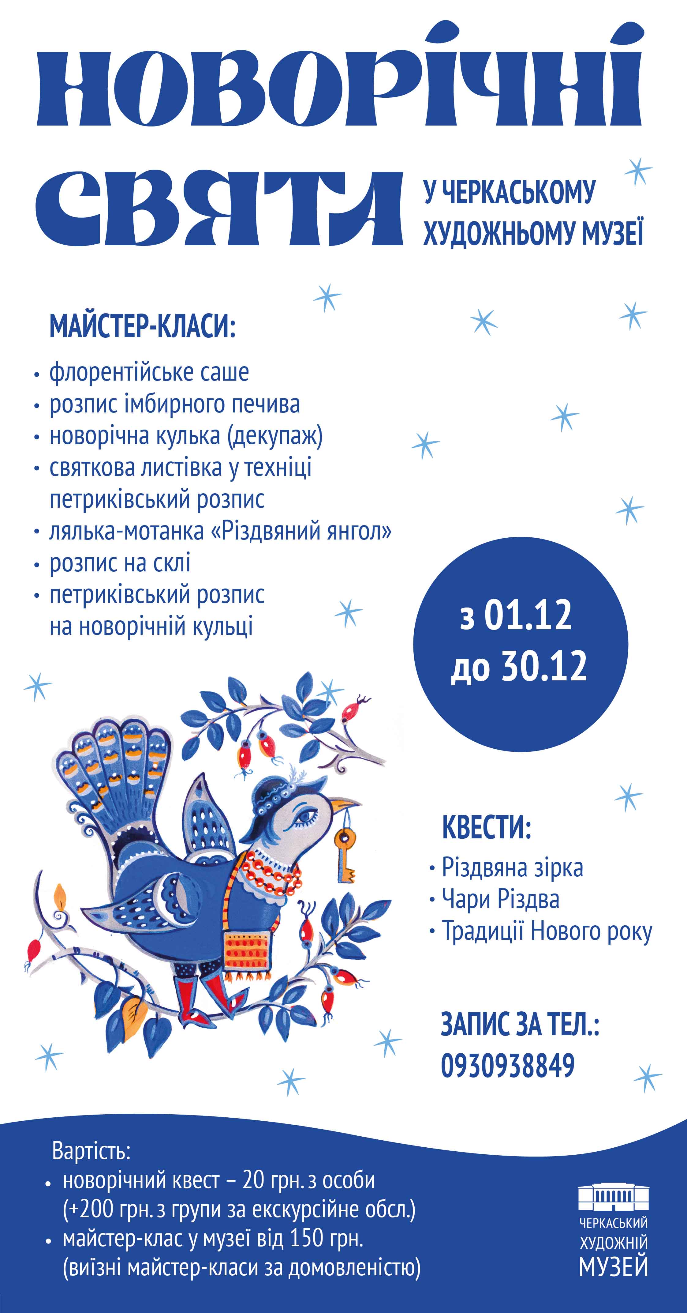 Запис груп на тематичні квести і майстер-класи до зимових свят у Черкаському художньому музеї відкрито!