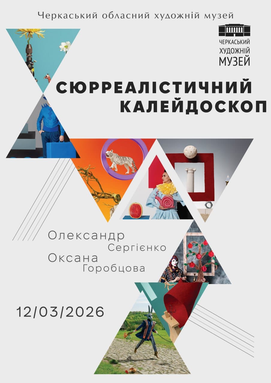 12 березня о 15:00 у Черкаському художньому музеї відбудеться відкриття виставки творчого дуету Олександра Сергієнка та Оксани Горобцової «Сюрреалістичний калейдоскоп».